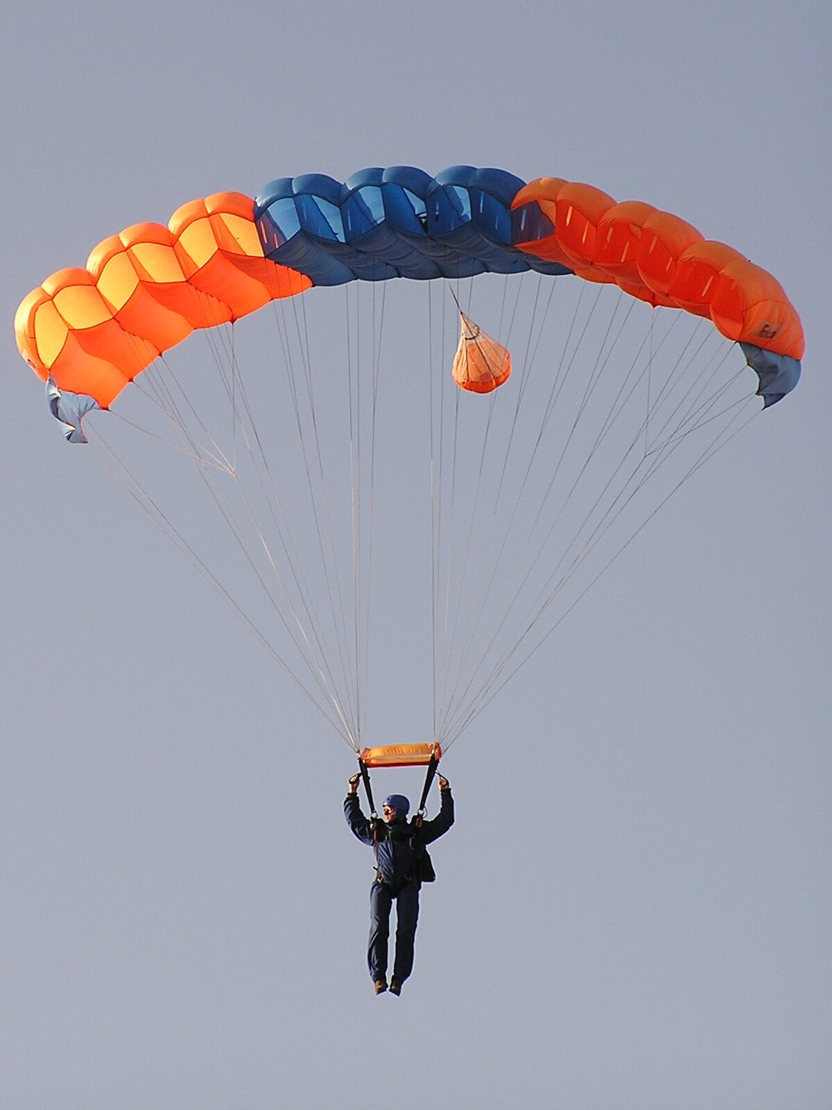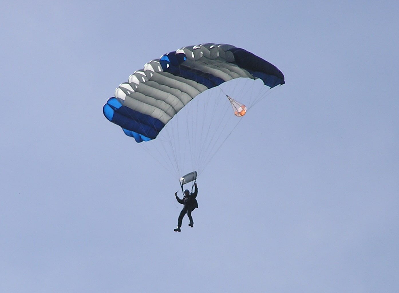 Po otevření padák sami řídíte a bezpečně přistáváte, přičemž vás instruktor po celou dobu navádí pomocí radiostanice.