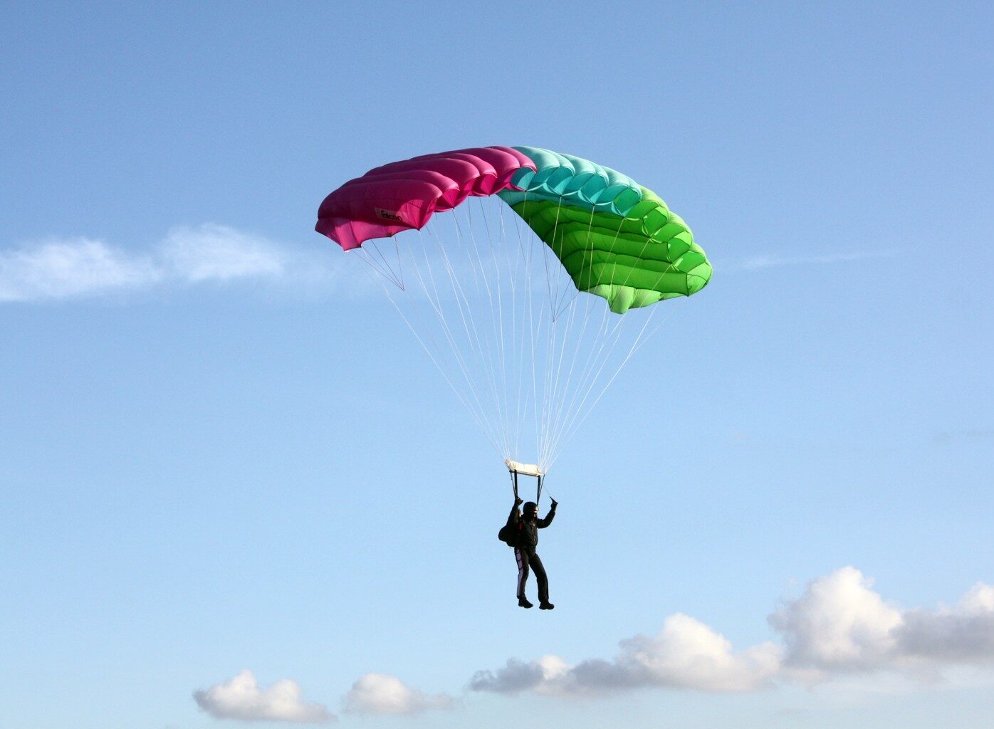 první seskok padákem na padáku typu křídlo Falcon z výšky 1200 – 1500 metrů